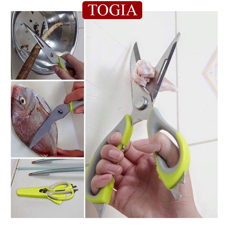 - Kéo đa năng 6in1 được thiết kế nhiều công dụng trong 1 cây kéo, giúp bạn làm bếp thật tiện lợi và đơn giản, không cần nhiều công cụ mà vẫn làm được nhiều việc với chỉ 1 cây kéo.