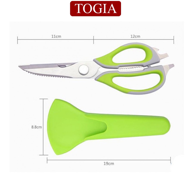 - Sản phẩm gồm: kéo và bao nhựa cứng để treo trên bếp.
