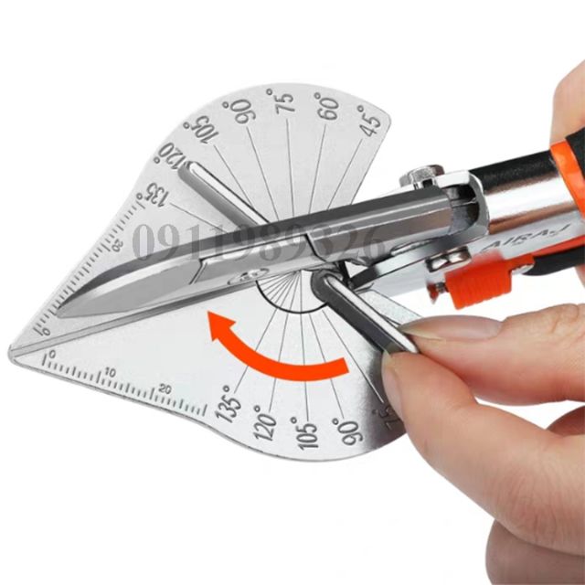 _ Chuyên dùng để cắt ghép góc nẹp điện, gioăng cao su, ống nước dẻo..._ Miệng kéo có ngàm điều chỉnh góc cắt với các vạch chia độ: 45°, 60°, 75°, 90°, 105°, 120°, 135° được khắc rõ nét
