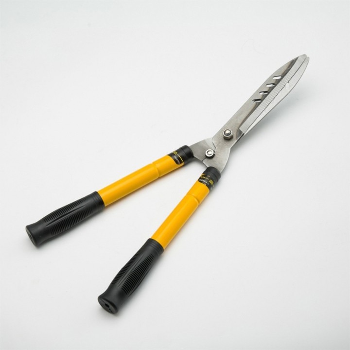 Là lưỡi kéo rất sắc và nhọn, được thiết kế đặc biệt với những lỗ thủng trên thân lưỡi. Lưỡi kéo được làm bằng thép không gỉ, bản kéo dày rất chắc chắn tạo lực cắt rất khỏe. Đáp ứng được nhu cầu làm vườn về cắt tỉa hàng rào và cắt cỏ rất nhanh.
