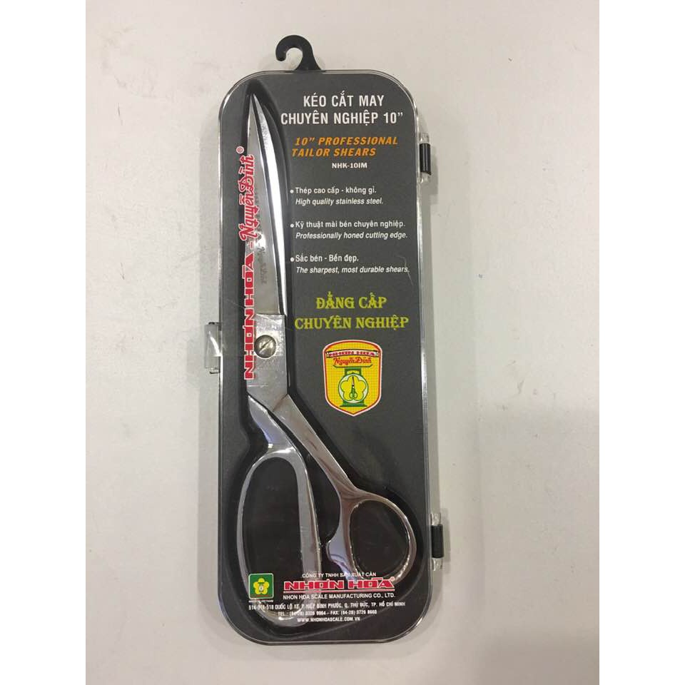 Giá bán lẻ 345k.- Mô tả: kéo cắt may Nguyễn Đình - Nhơn Hòa loại 1 có hộp.