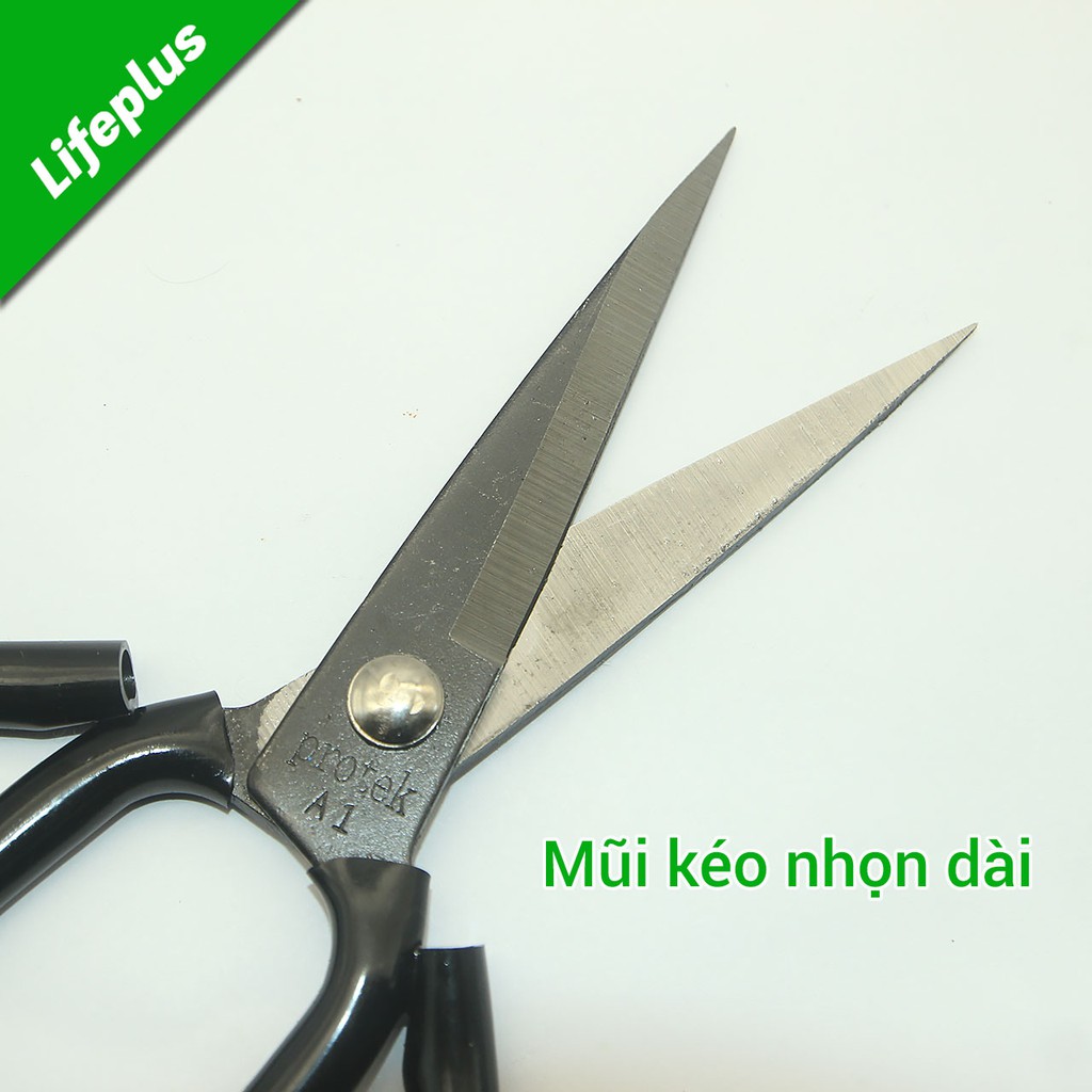 Làm từ thép hợp kim đã qua xử lý nhiệt tổng thể nên tương đối bền bỉ và có độ cứng ổn địnhLưỡi kéo dài, nhọn vát một mặt sắc bén