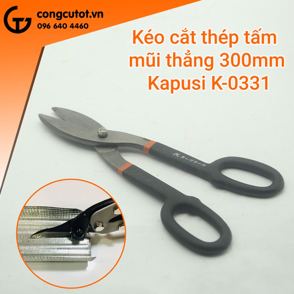 Kéo cắt thép tấm mũi thẳng 300mm Kapusi K-0331 là loại kéo được sản xuất tại Trung Quốc theo tiêu chuẩn Nhật, rất tiện dụng khi cắt tôn tấm và thép cuộn.Chuyên dụng dùng cắt thép tấm độ dày dưới 1mm, cắt đươc tôn và thép cuộn