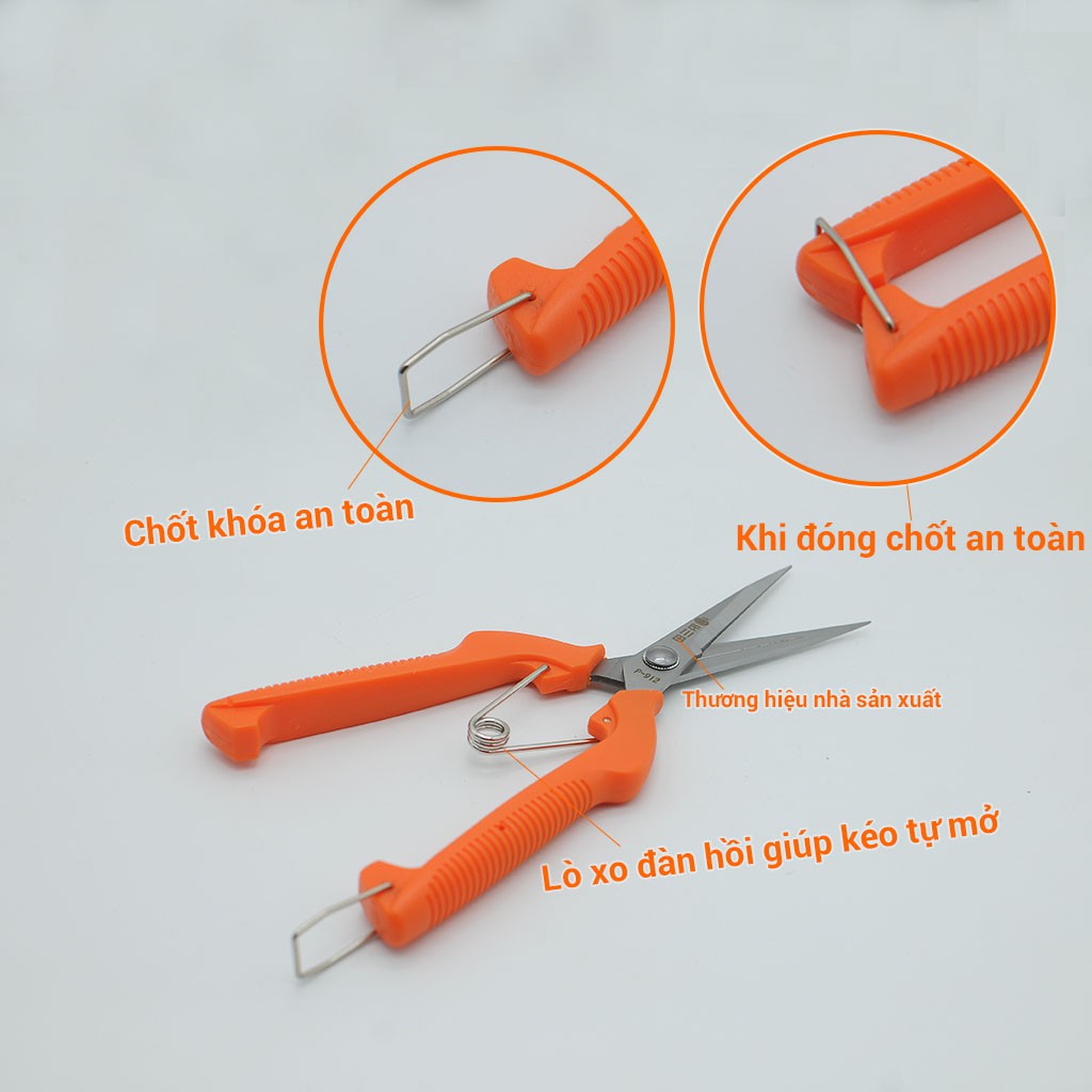 -Kéo có lò xo tự mở,giúp tránh mỏi tay