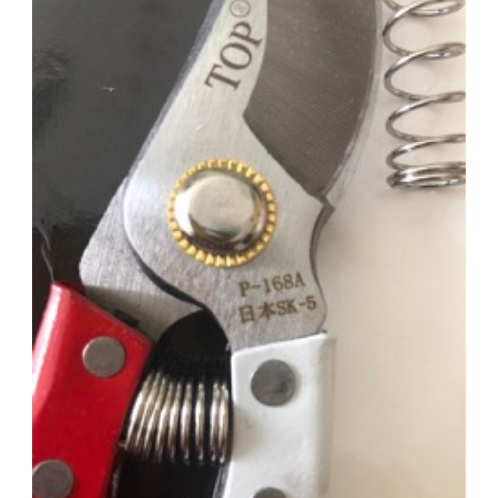 Kéo cắt cành hãng của TOP được làm từ thép SK5 cao cấp. Thép SK5 có độ chống mòn cực cao, chuyên dùng sản xuất dao chiết ghép cây.
