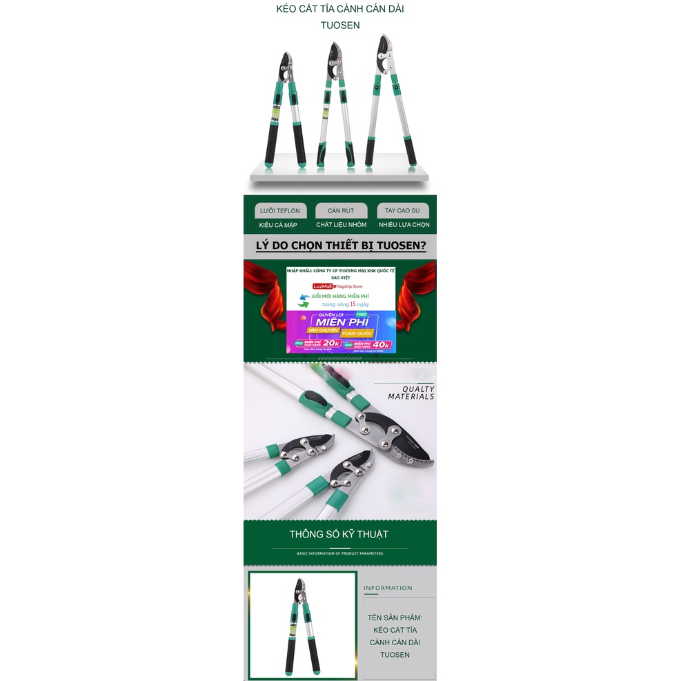 Giới thiệu Kéo cắt tỉa cây cành cây cán dài TUOSEN / Tuo Sen