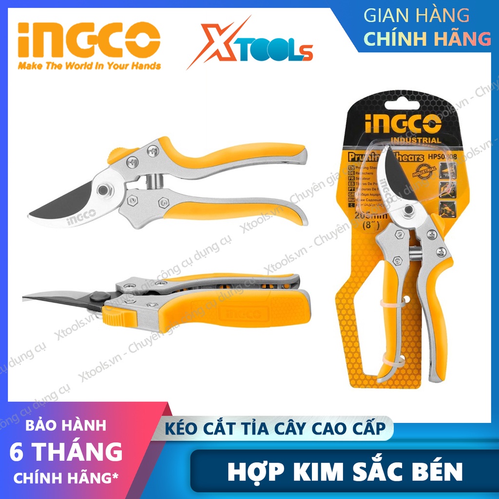 Kéo cắt tỉa cây INGCO HPS0308 8" kéo cắt cành, tỉa cây cảnh, cây ăn trái, tỉa lá chuyên dụng, làm vườn có trợ lực lò xo