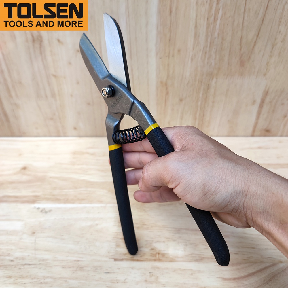 - Kéo cắt tôn Tolsen với lưỡi kéo sắc bén, thiết kế cơ học giúp gia tăng lực cắt, đầu kéo thon dài mang đến sự an toàn trong quá trình thao tác. Kích thước nhỏ gọn, vừa vặn tay cầm cũng như cất giữ trong các hộp dụng cụ. Người dùng có thể bỏ túi để mang theo linh hoạt khi di chuyển đổi khu vực. Hoạt động dễ dàng bằng một tay.