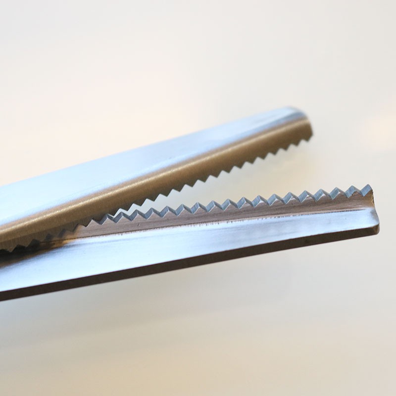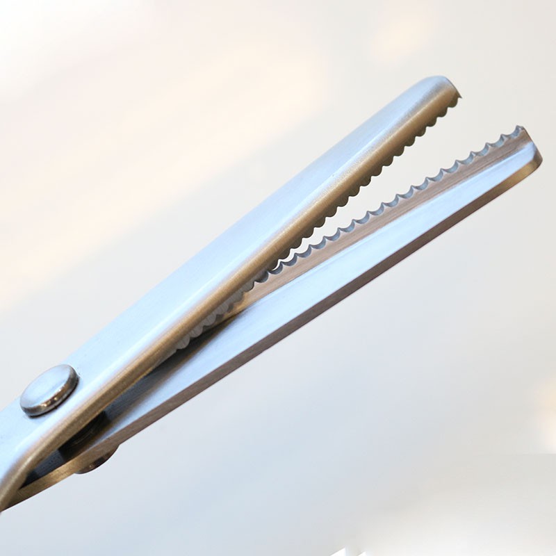 Kéo cắt vải, cắt may chuyên nghiệp có răng cưa (hình tròn và tam giác).Kéo được làm từ thép chất lượng cao, rèn và đúc nguyên khối. Bề mặt lưỡi kéo được mạ crôm. Lưỡi kéo sắc bén, độ bền cao, cắt đầm tay, bám vải, không bị xơ vải.