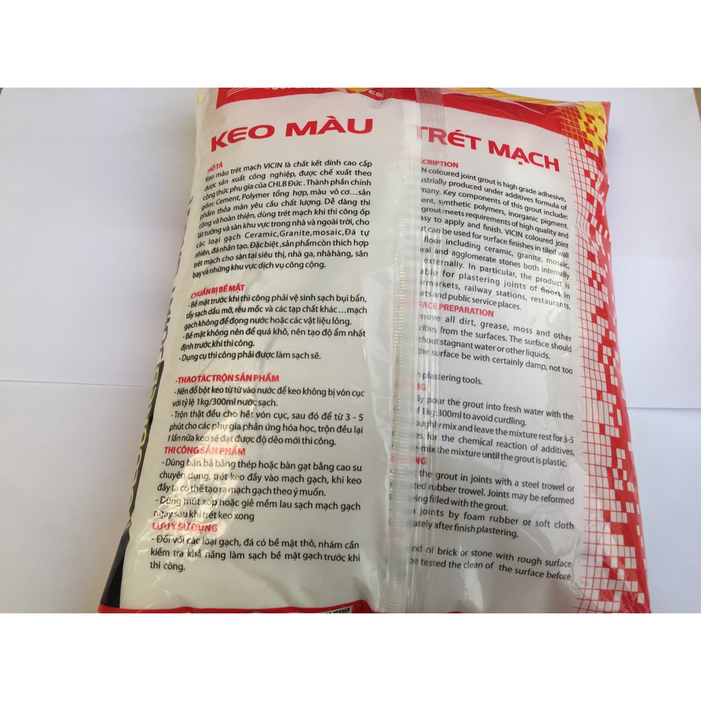 + Keo chà mạch VICIN là chất kết dính cao cấp được sản xuất công nghiệp, được chế xuất theo công thức phụ gia cao cấp của CHLB Đức. Thành phần chính gồm ciment, polymer tổng hợp, màu vô cơ... Sản phẩm thỏa mãn yêu cầu chất lượng, dễ dàng thi công và hoàn thiện, dùng để chít mạch khi thi công ốp lát tường và thi công khu vệ sinh, ngoài trời, cho các loại gạch Ceramic, Granit, đá tự nhiên và nhân tạo, trét trám những chỗ hổng tại sàn tường siêu thị, sân bay, nhà hàng và các khu vực công cộng ngoài trời đặc biệt để gắn bệt, xổm vệ sinh đảm bảo chắc chắn và bền chặtKim khí điện máy Xuân Tú Hân Hạnh Được Phục Vụ Quý Khách !!!