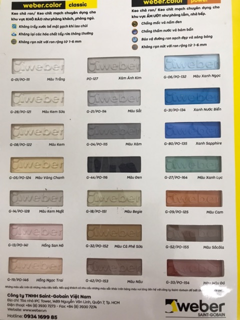 1. Keo chà ron Weber color classic2. Cong ty TNHH Saint - Gobain Việt Nam - chi nhánh Hiệp Phước