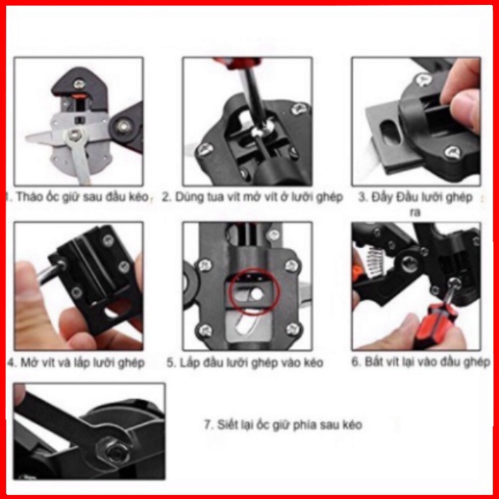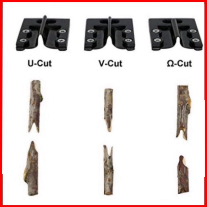 Mối ghép càng khít thì cơ hội sống và phát triển của cành ghép càng cao. Hơn nữa, những người thợ chuyên làm vườn thì không chỉ ghép một vài cây mà phải thực hiện hàng trăm hàng ngàn cây cần ghép để có một vụ mùa bội thu. Với kéo chuyên dụng bạn chỉ cần làm các bước đơn giản sau (sau khi chọn được cành ghép và gốc ghép): Chọn lưỡi cắt phù hợp (bộ gồm 3 lưỡi cắt kèm theo).