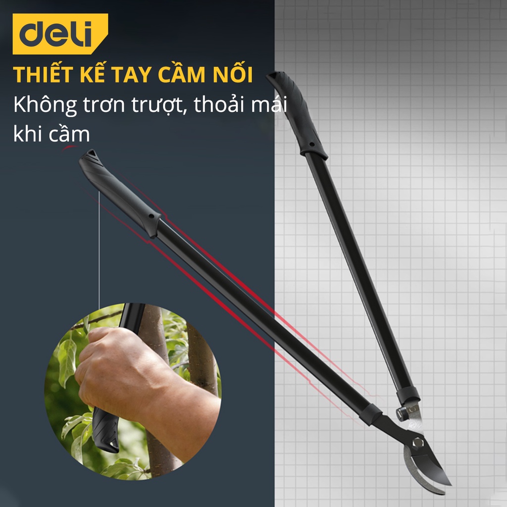 Nhà cửa & Đời sống > Làm vườn > Dụng cụ làm vườn || Kéo Cộng Lực Cắt Cành Cán Dài Deli 26.5 Inch - Lưỡi Cắt Bằng Thép Sắc Bén, Siêu Cứng, Tay Cầm Có Đệm Cao Su - DL2779Còn hàng
