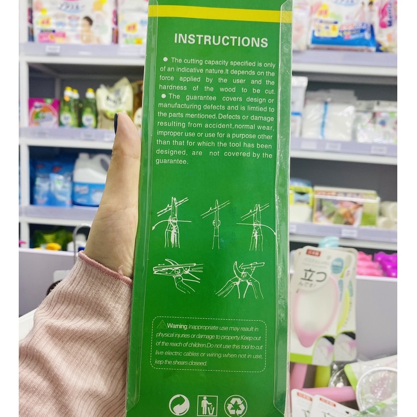 Bảo quản : Sau khi sử dụng xong, bạn nên lau chùi sạch sẽ khỏi nhựa, bẩn bám vào kéo. Tuy lưỡi kéo là thép không gỉ nhưng bạn vẫn nên lau sạch và bảo quản cẩn thận để các khớp quay luôn nhẹ nhàng khi sử dụng, không bị kẹt bởi nhựa cây. Sau khi vệ sinh sạch sẽ bạn nhớ đẩy chốt khóa để khóa chặt đầu kéo lại tránh gây nguy hiểm khi lấy kéo ra và giúp cho kéo sử dụng bền bỉ hơn.