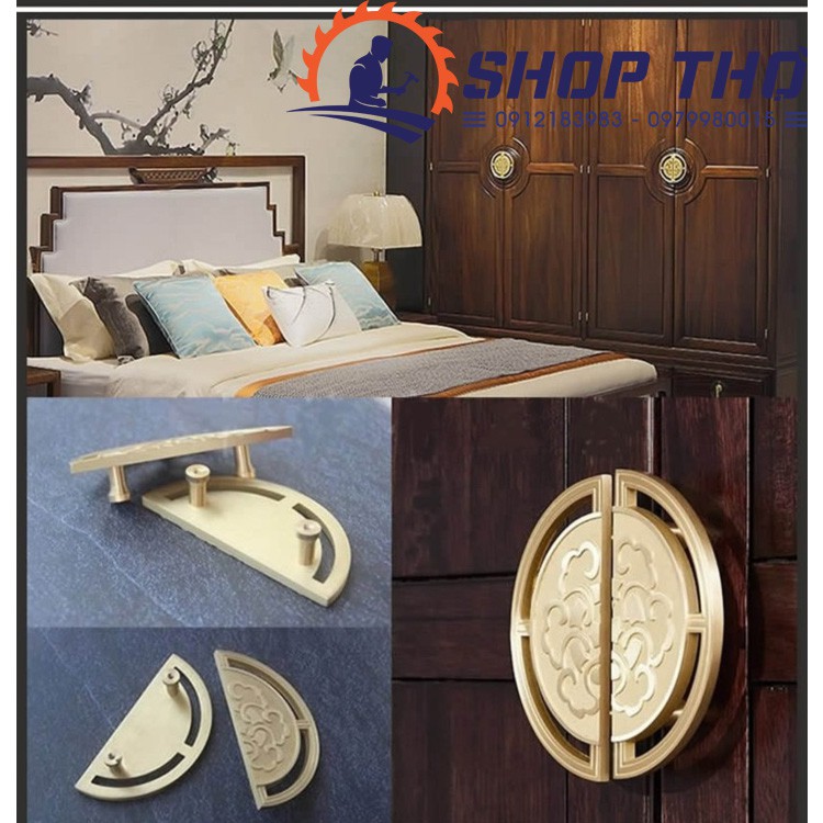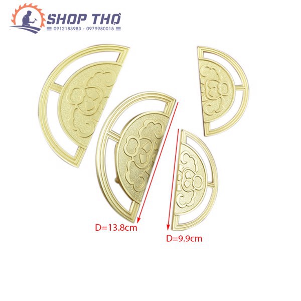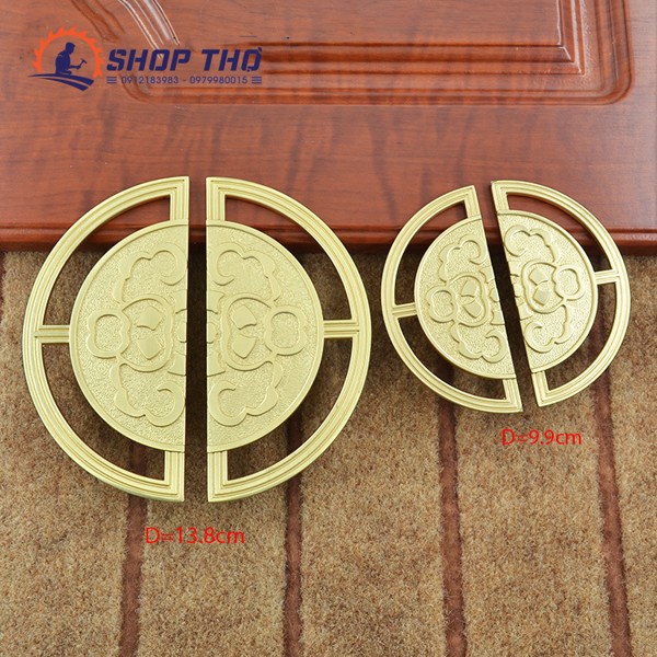 Tay kéo cửa tủ màu vàng được bán theo bộ (trái, phải)- Có hai kích thước đường kính là 9.8cm và 13.8cm