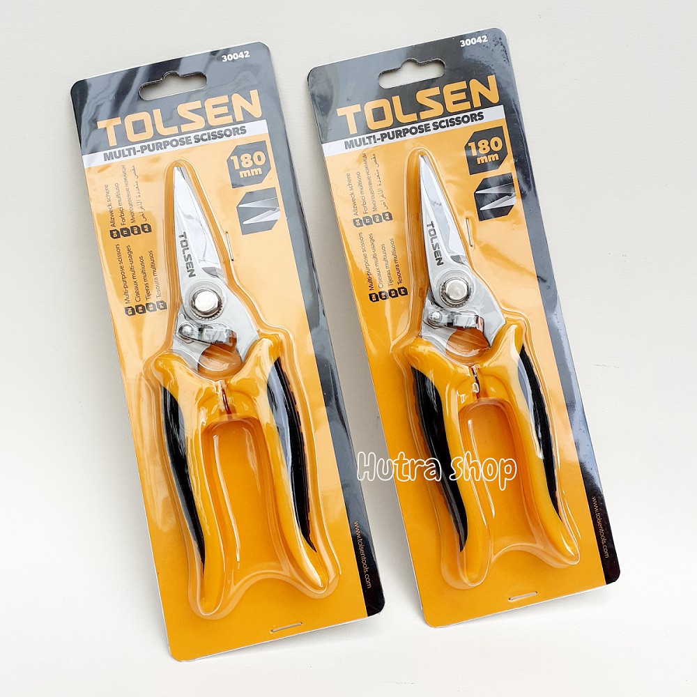 Kéo đa năng hãng Tolsen là dụng cụ cắt được vật dày mà kéo văn phòng thông thường không thể cắt được hoặc nếu cắt được thì cũng làm kéo nhanh hỏng. Kéo còn được dùng cắt tỉa cây như kéo cắt tỉa bonsai, kéo cắt được vỏ lon nước ngọt lon bia hay cắt được kim loại có tính chất tương tự. Kéo đa năng cắt được nhựa tấm mica hay dây nhựa gàn thùng hàng.Kéo đa năng Tolsen còn có lõm tuốt vỏ dây điện, là sản phẩm các kỹ thuật viên cần có một cây để sẵn trong túi khi làm việc.