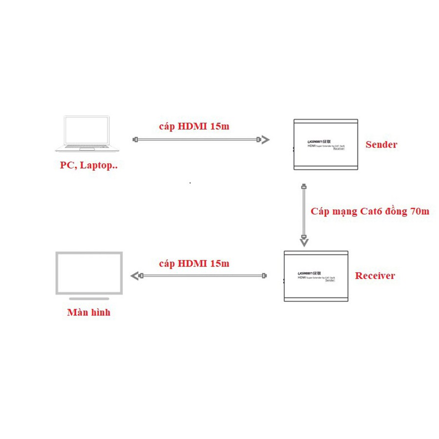[Mã 254ELSALE giảm 7% đơn 300K] Bộ kéo dài HDMI qua dây LAN 60M Ugreen 40210 chính hãng - Hapustore