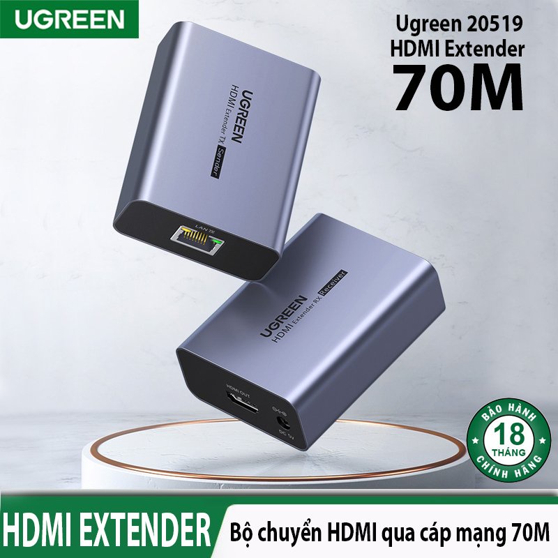 Máy tính & Laptop > Phụ Kiện Máy Tính > Bộ chia cổng USB & Đọc thẻ nhớ || Bộ kéo dài HDMI qua Lan 70 met dây mạng Cat5/Cat6 Cao Cấp Ugreen 20519 CM445 (Bộ 2 cái+Adapter) Chính HãngCòn hàng