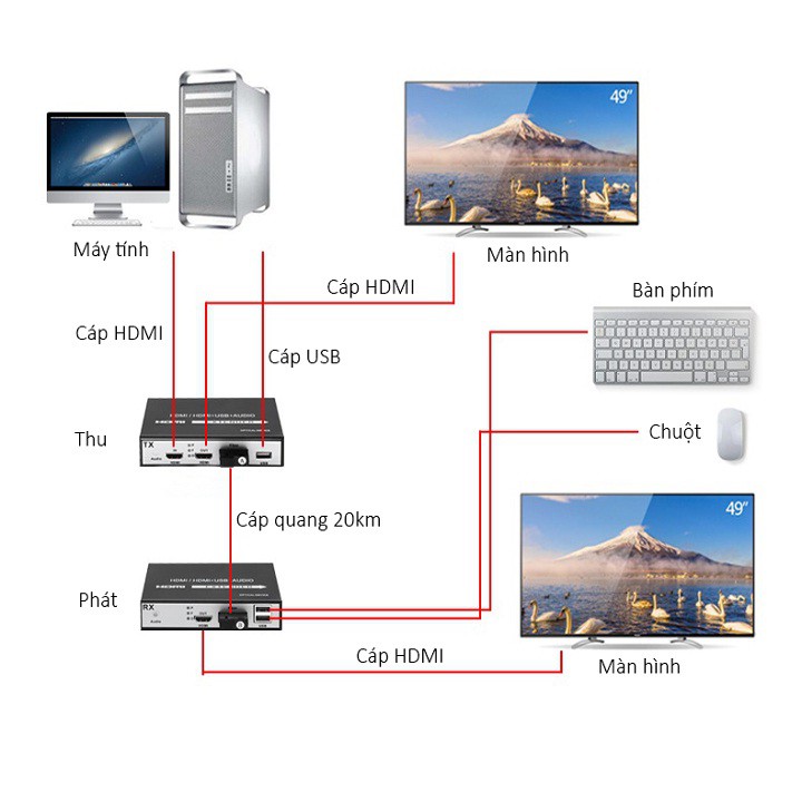 Thiết Bị Điện Gia Dụng > Tivi & Phụ kiện > Tivi || Bộ Kéo Dài HDMI và USB Qua Dây Quang Xa 20KM Hỗ Trợ 2 Cổng HDMI Và AudioCòn hàng