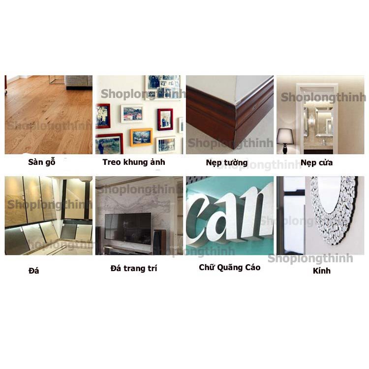 Ưu điểm: dễ sử dụng, tiết kiệm thời gian, không cần đục tường , khoan lỗ, sử dụng sau từ 24h. Sử dụng gần như hầu hết trên các loại bề mặt tường, kính, gỗ