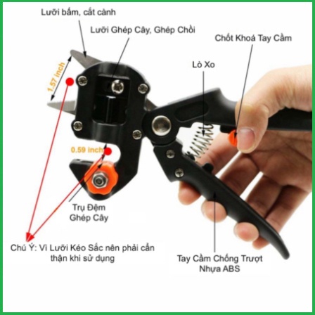 Kéo với lưỡi cắt được làm từ thép SK5 chuyên dùng ghép cành, giúp vết cắt gọn và vừa khít, ít bị dập nát.