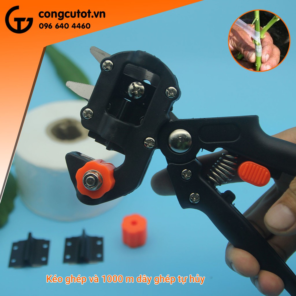 -Ngày nay, chiếc kéo ghép cây không còn xa lạ với người thợ làm vườn nữa. Dụng cụ nghề nông giới thiệu với các bạn bộ dụng cụ kéo ghép và 1000 m dây ghép chuyên nghiệp cho nhà vườn. Bộ dụng cụ ghép vườn ươm này có các ưu điểm: