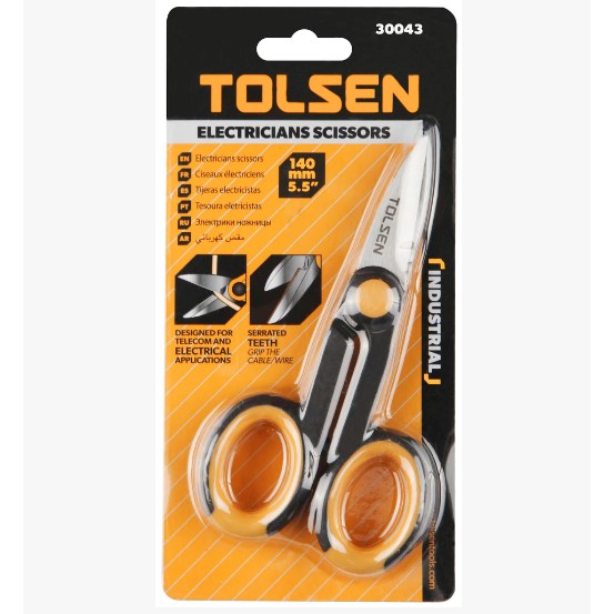 Kéo inox 30043 Tolsen là dụng cụ có chức năng cắt dây điện, tuốt dây điện, là sản phẩm thiết kế riêng cho nghành viễn thông và nghành điện. Kéo được làm bằng thép không gỉ, cán kéo bọc nhựa mềm tạo độ bám chắc khi thao tác. Lưỡi kéo ngắn và dày gia tăng lực cắt cho loại dây điện dân dụng hay dây dẫn cỡ vừa nghành viễn thông.Chiều dài: 5.5" (13,97 cm)