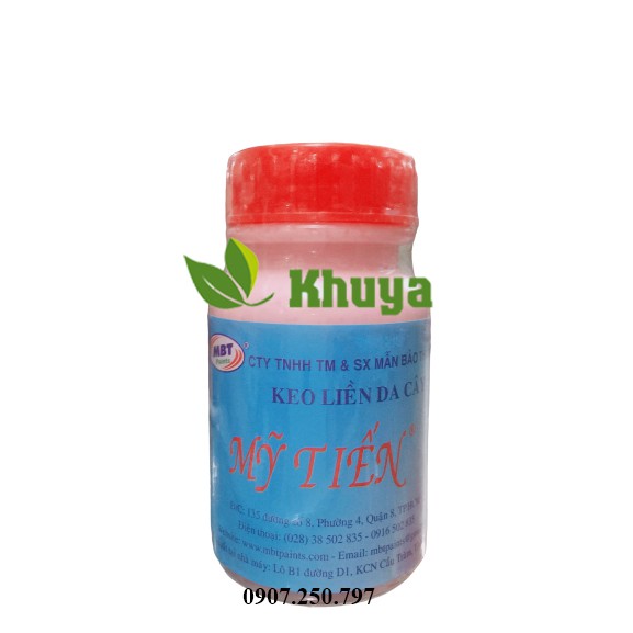 Keo liền da cây Mỹ Tiến 100mlKeo liền da cây Mỹ Tiến loại keo đang được sử dụng phổ biến trong giới cây cảnh hoa kiểng keo dùng rất tốt để bảo vệ vết cắt sau khi ghép cây, cắt, tỉa cành, ngăn ngừa vi khuẩn, rong rêu, nấm mốc, thấm sâu và tạo màng bảo vệ vững chắc bề mặt cắt, tăng cường sự phát triển của vỏ, liền sẹo cực nhanh, kích thích nảy mầm vết cắt dùng cho cây xanh.