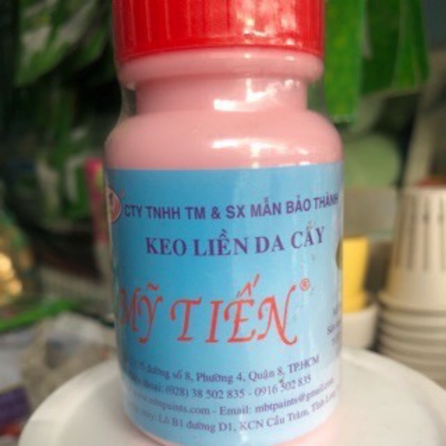 Keo liền da cây ( Keo liền sẹo) Mỹ Tiến lọ 100gKeo liền da cây (keo liền sẹo) Mỹ Tiến dùng để xử lý vết cắt cây, dán lá, khử trùng vết cắt cho cây, bổ sung vi lượng cho cây, làm cây mau hồi phục, ra rể, chồi nhanh,…
