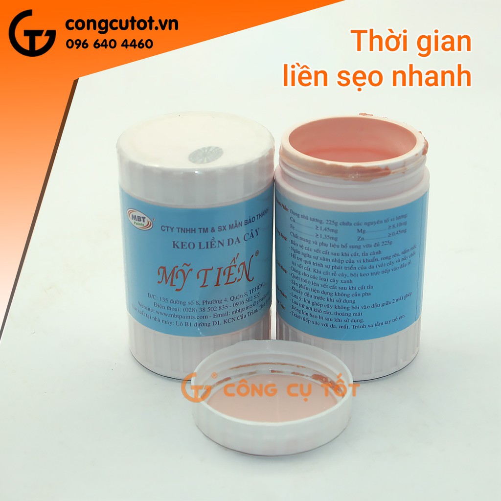 - Keo liền da cây Mỹ Tiến loại keo đang được sử dụng phổ biến trong giới cây cảnh hoa kiểng keo dùng rất tốt để bảo vệ vết cắt sau khi ghép cây, cắt, tỉa cành, ngăn ngừa vi khuẩn, rong rêu, nấm mốc, thấm sâu và tạo màng bảo vệ vững chắc bề mặt cắt, tăng cường sự phát triển của vỏ, liền sẹo cực nhanh, kích thích nảy mầm vết cắt dùng cho cây xanh.