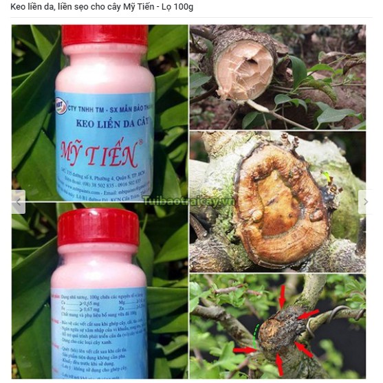 Keo liền da, liền sẹo cho cây Mỹ Tiến - Lọ 100gKeo liền da, liền sẹo cây trồng với thành phần bao gồm các hoạt chất đa vi lượng như : Cu, Fe, Mg, Zn và các phụ chất vừa đủ. Keo liền da cây Mỹ Tiến loại keo đang được sử dụng phổ biến trong giới cây cảnh hoa kiểng keo dùng rất tốt để bảo vệ vết cắt sau khi ghép cây, cắt, tỉa cành, ngăn ngừa vi khuẩn, rong rêu, nấm mốc, thấm sâu và tạo màng bảo vệ vững chắc bề mặt cắt, tăng cường sự phát triển của vỏ, liền sẹo cực nhanh, kích thích nảy mầm vết cắt sản phẩm dùng cho mọi loại cây.