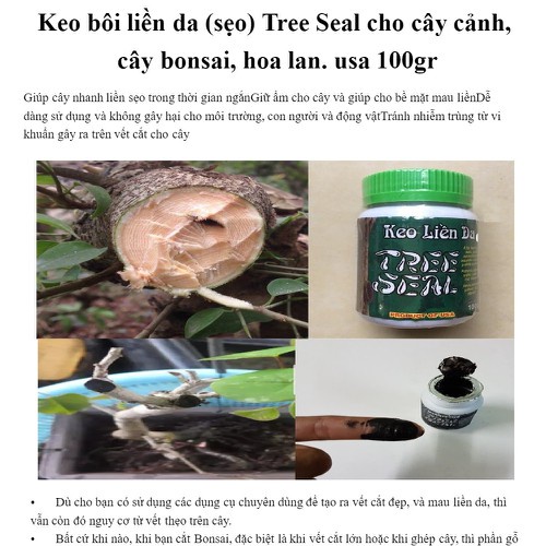 Giới thiệu Keo liền da, liền sẹo cho cây trồng ( bôi vào vết cắt ) Tree seal từ Mỹ
