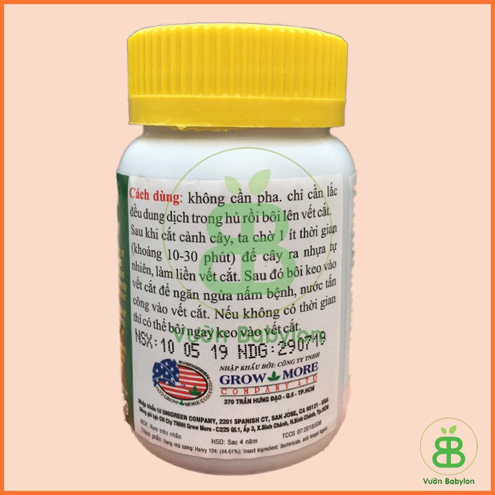 Dùng để xử lý vết cắt cây, dán lá, khử trùng vết cắt cho cây, bổ sung vi lượng cho cây, làm cây mau hồi phục, ra rể, chồi nhanh,…Tăng tỷ lệ sống của các chồi mới ghép.