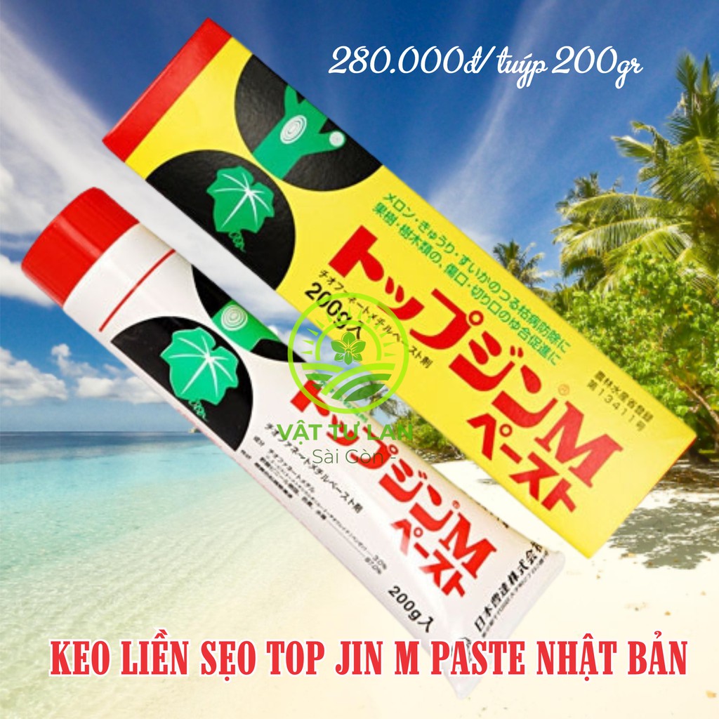 Keo liền sẹo Nhật Bản: Top Jin M Paste 200g. Giúp kéo thẹo nhanh, bít kín vết thương ngăn ngừa nhiễm trùng, nấm mốc, côn trùng, úng nước, ức chế chảy máu nhựa cây.Sản phẩm sản xuất tại Nhật Bản, nhập chính hãng từ Nhật Bản