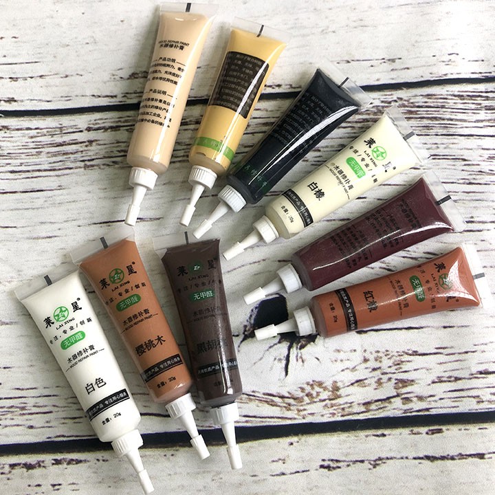 Keo màu che vết xước, khuyết điểm đồ gỗ nội thấtKeo che xước sơn đồ gỗ, sàn gỗ, che vết nứt, vết xước trên đồ gỗ phủ màu gỗ Che đi các vết xước, vết trầy, lỗ hổng, khoảng trống trên bề mặt gỗ