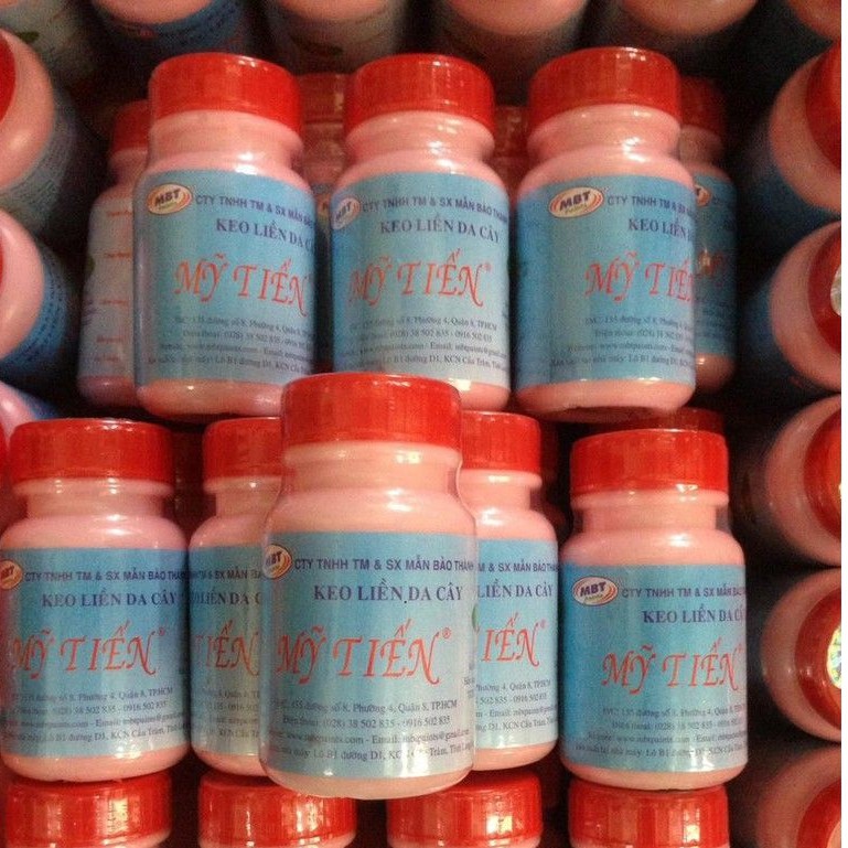 Hiện tại đang bán keo liền da Mỹ Tiến, dùng rất tốt, vết keo bôi mau khô.