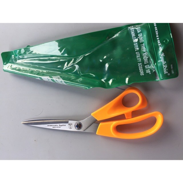 Kéo Nguyễn Đình cán nhựa loại 10inch sử dụng cắt vải cắt đồ gia dụngKéo sử dụng thép không rỉ cho độ bền cao