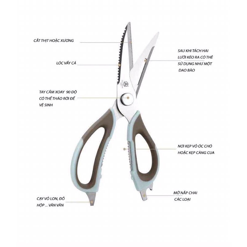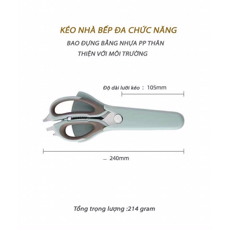 Kéo nhà bếp đa chức năng có bao đựng rất tiện lợiKéo được làm bằng inox cao cấp