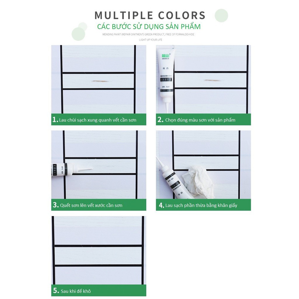 - Che đi các vết xước, vết trầy, lỗ hổng, khoảng trống trên bề mặt gỗ - Dễ sử dụng, hiệu quả nhanh chóng - Nhiều màu sắc có sẵn để lựa chọn, tùy theo nhu cầu sử dụng - Trọng lượng: 20g