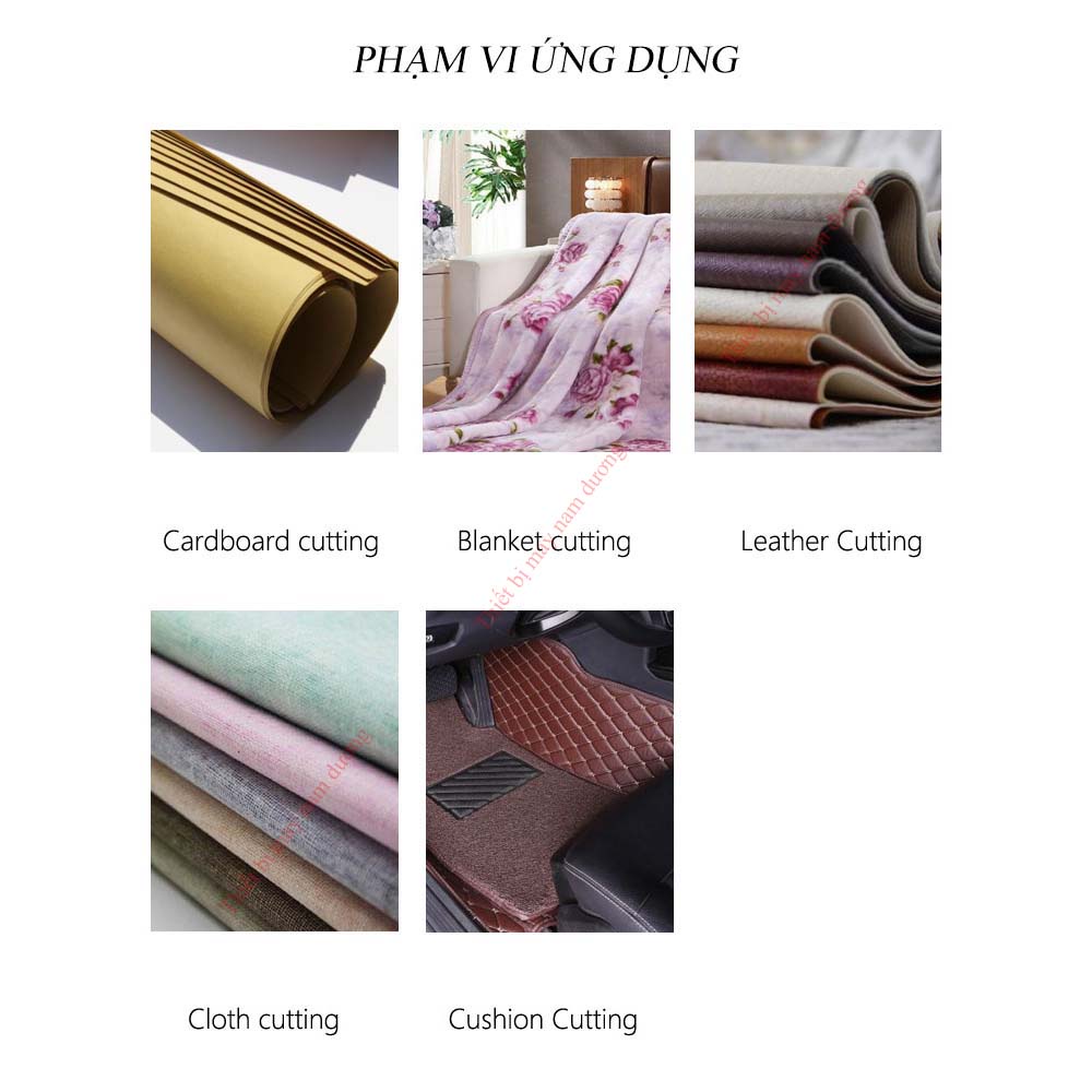 - Khả năng cắt đa dạng các loại vải khác nhau như vải sợi, vải cotton, lụa, sợi hóa học, xốp da, sử dụng tại các cửa hàng may mặc, công ty sản xuất quần áo nhỏ lẻ.