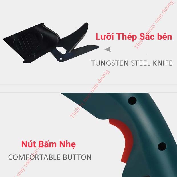 - Lưỡi kéo thép bền và bén, dễ dàng tháo lắp thay thế (có lưỡi sơ cua)