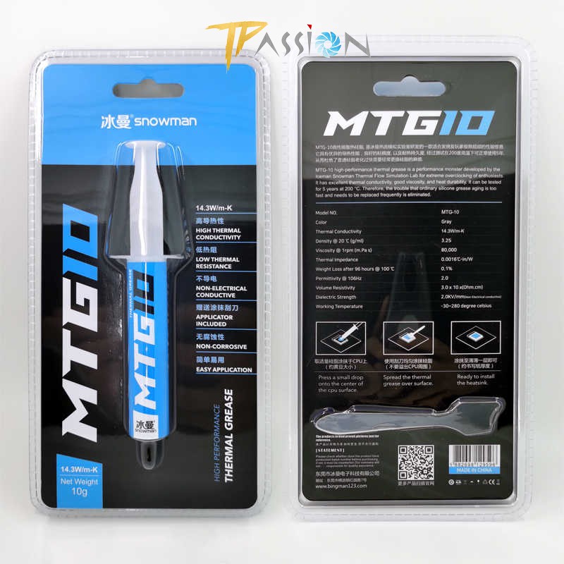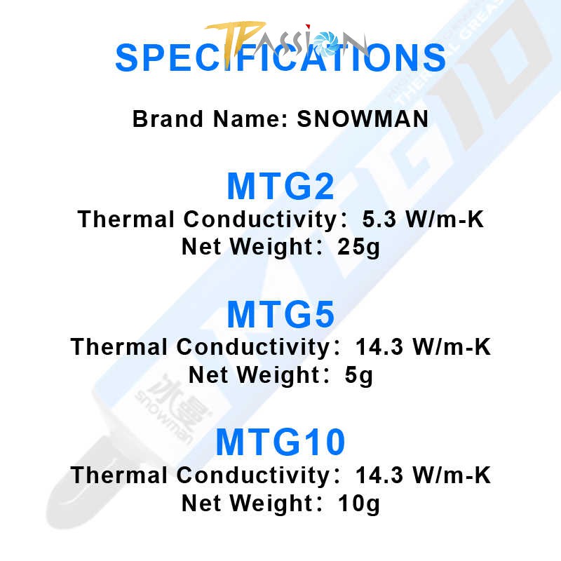 Giới thiệu Keo tản nhiệt 14.3W/mK Snowman MTG5 (5g) | MTG10 (10g) - Hàng chính hãng, dẫn nhiệt khủng, không dẫn điện, bền bỉ