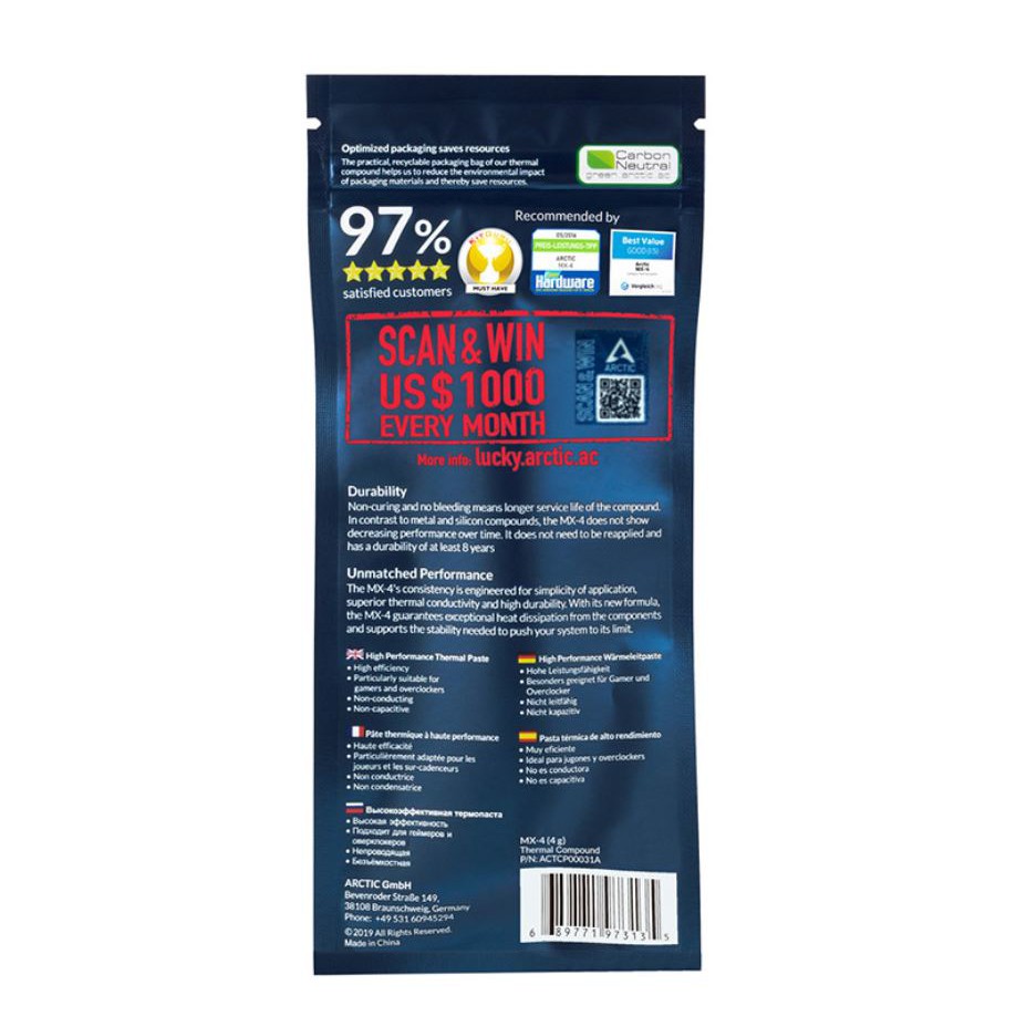- Arctic MX 4 mẫu túi zip 2020 đậm đặc hơn mẫu 2019 do ít dầu làm mềm cho hiệu quả tản nhiệt tốt hơn