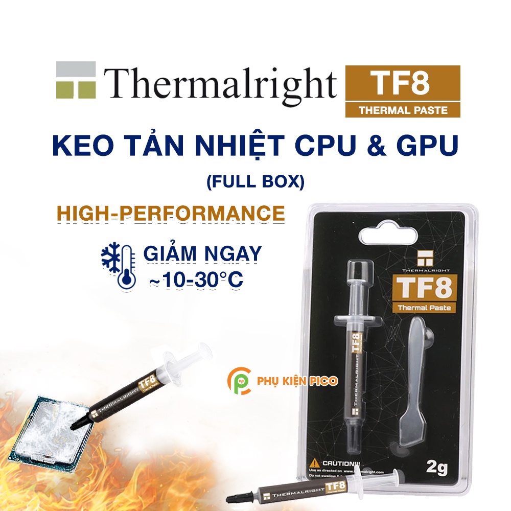 - Thermalright TF8 Thermal Paste không chứa kim loại, silicone, ăn mòn, gây chạm mạch, tuyệt đối an toàn với các linh kiện khác trong quá trình sử dụng.