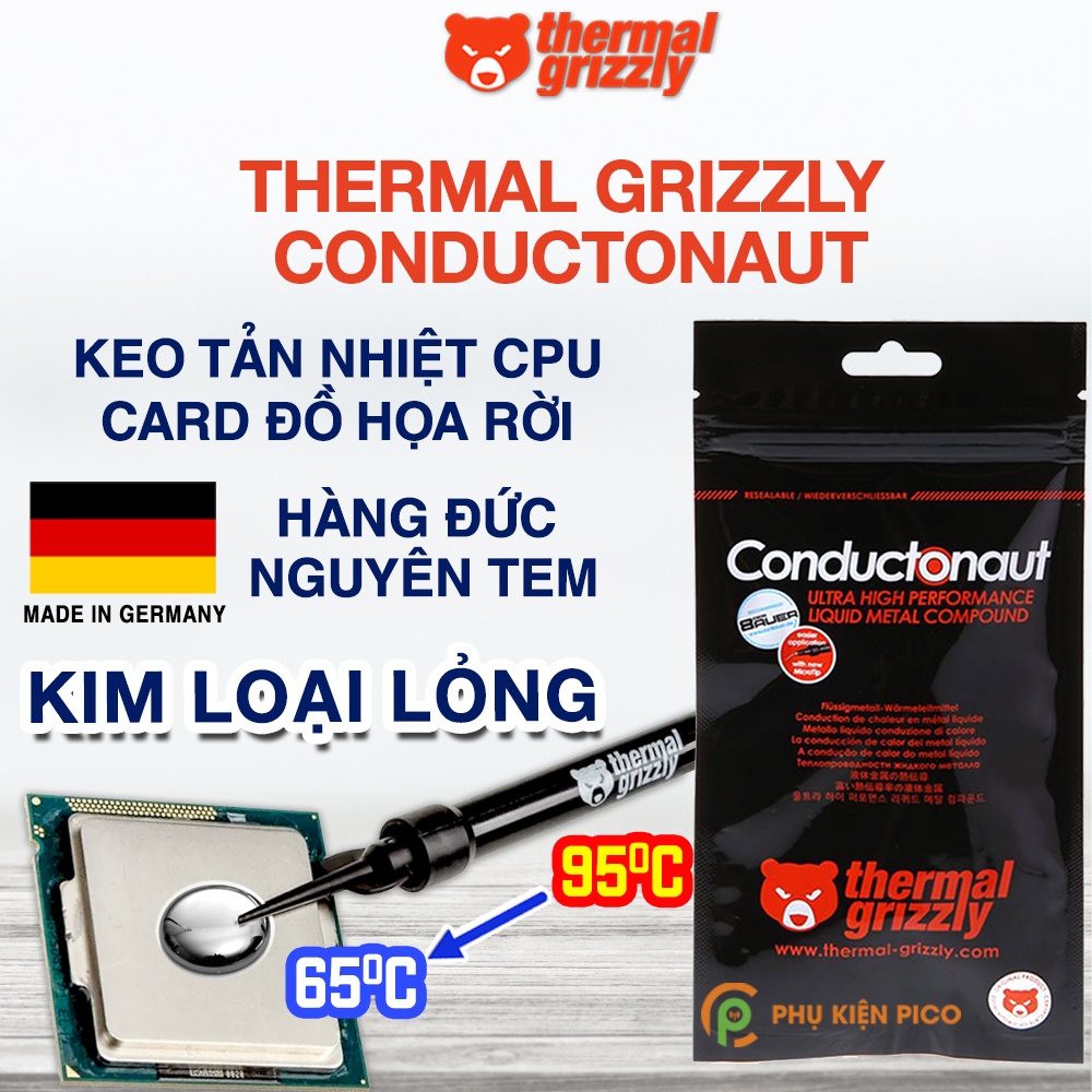 Keo tản nhiệt kim loại lỏng Thermal Grizzly Conductonaut 1 Gram và Keo tản nhiệt Thermal Grizzly Kryonaut Liquid Helium 1 Gram hàng chính hãng nguyên seal của CHLB Đức.Kem tản nhiệt cpu Thermal Grizzly Conductonaut kim loại lỏng.