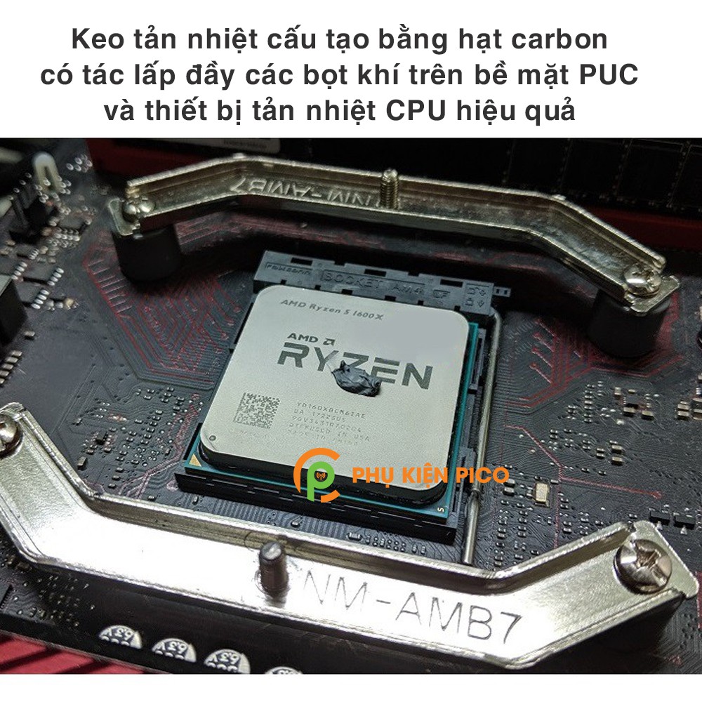 - Keo tản nhiệt (kem tản nhiệt) cấu tạo bằng hạt carbon có tác dụng lấp đầy các bọt khí trên bề mặt CPU và thiết bị tản nhiệt CPU hiệu quả.