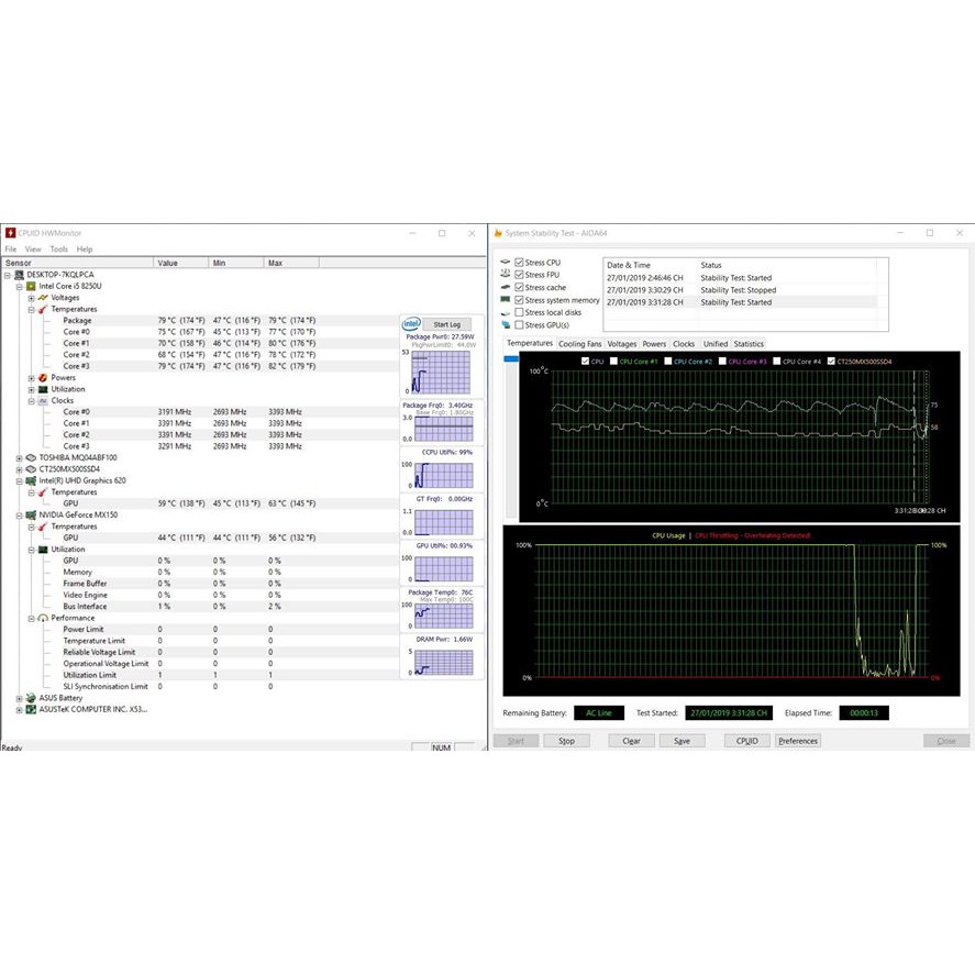 - Khi nhiệt độ CPU chạm mốc 98-105 độ C, nó sẽ bắt đầu giảm tốc độ xung nhịp để giảm nhiệt độ. Nếu nhiệt độ tăng cao hơn mốc trên, CPU sẽ tự tắt để tránh hỏng hóc nặng nề.