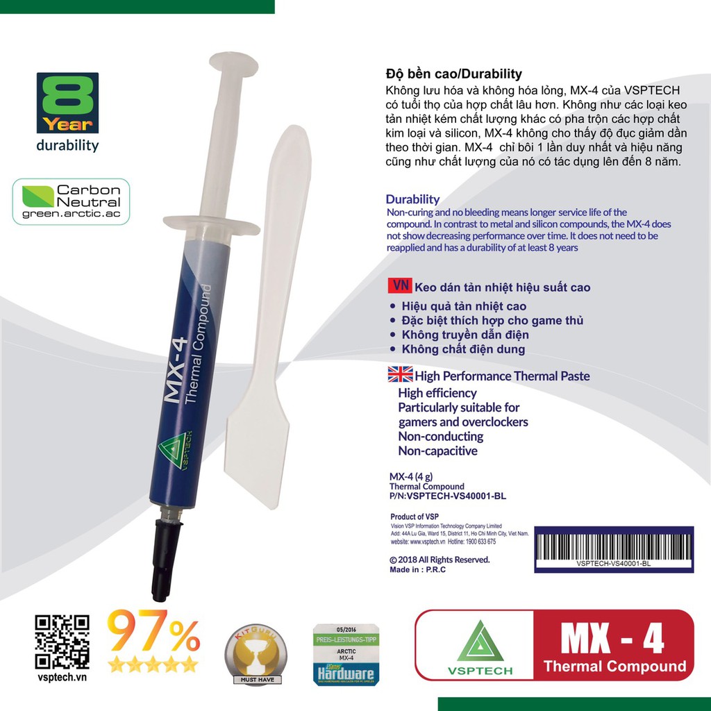 Máy tính & Laptop > Linh Kiện Máy Tính > Keo Tản Nhiệt || Keo tản nhiệt VSPTECH MX-4 (4g) dạng ống chíchCòn hàng