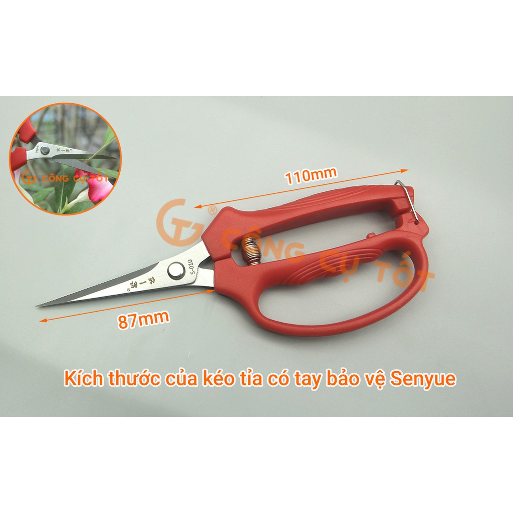 Được làm bằng hợp kim thép, có tay bảo vệ giúp cầm kéo được thoải mái khi sử dụng.