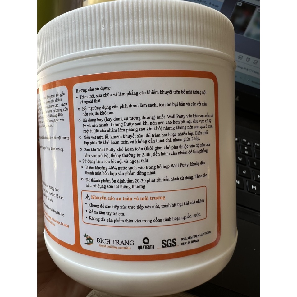 Để sửa chữa các hạng mục nhỏ như trét lỗ đinh, tắc kê, các vết nứt trên tường thì thường mọi người hay mua bột trét tường về trám và sau đó mua thêm sơn để sơn hoàn thiện lại. Thay vào đó chúng ta có thể dùng keo trám trét Wall Putty Lotus này 2 in 1 vừa lót vừa trám, rất tiết kiệm nha các bạn. Sau khi bạn trét các khiếm khuyết xong thì bạn pha loãng với nước lạnh là thành sơn lót. Pha loãng nước có thể làm sơn hoàn thiện nội thất tương đương các sơn nội thất trung bình.Hãy nghiên cứu thành phần của Keo Trám Trét WALL PUTTY 2 in 1 này nhé